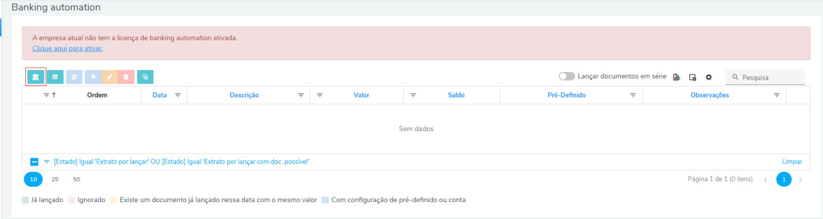 Assim, a opção de carregar o extrato bancário em Excel passa a estar visível acima da grelha de movimentos para todas as empresas. Mesmo quem não possui licença de Banking Automation passa a ter acesso rápido e direto a esta funcionalidade.